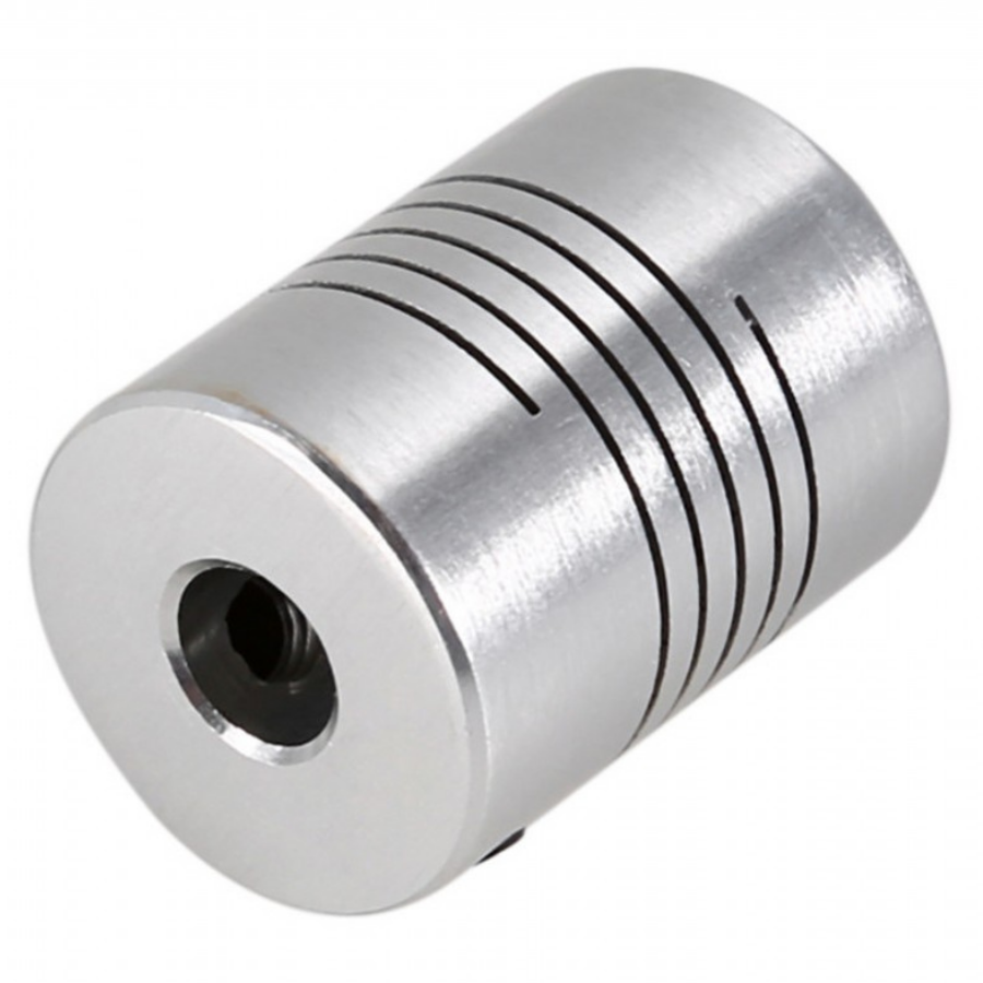 O acoplamento Flexível também tem a função de minimizar diferenças de alinhamento entre o motor de passo e o fuso conectado.