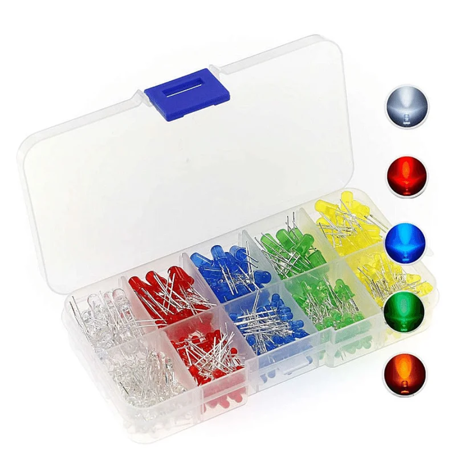 KIT 200 LEDS 3MM E 5MM EM 5 CORES COM CAIXA ORGANIZADORA