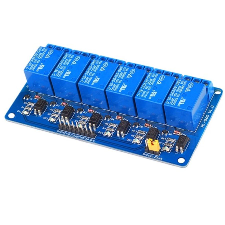 O Módulo Relé 5V 6 Canais é um módulo de acionamento que permite integração com um grande número de sistemas microcontroladores, dentre estes: Arduino, AVR, PIC, ARM, STM32, Raspberry PI, etc.